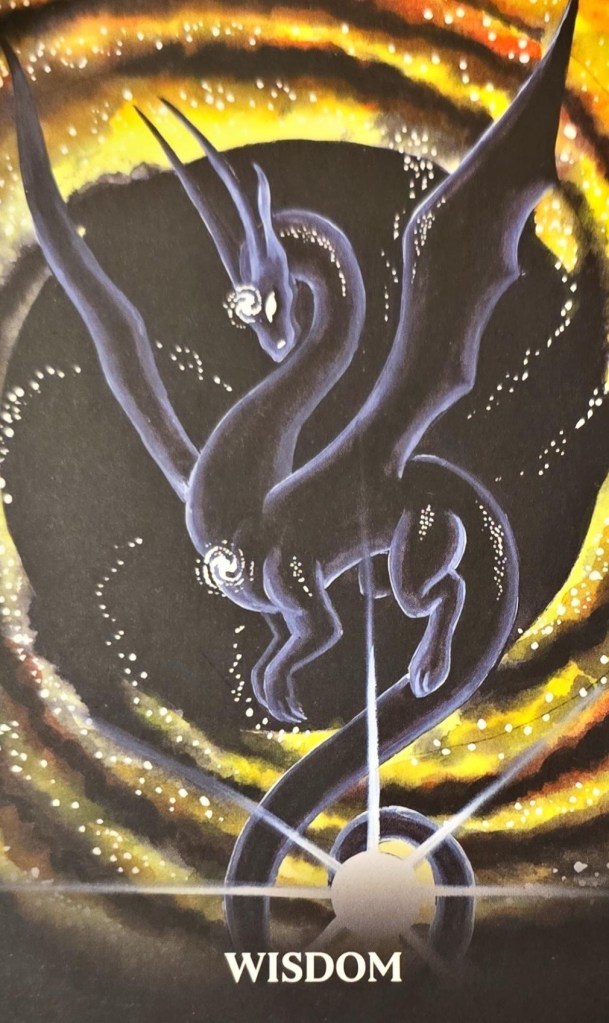 撇開「智慧」的意涵,端看這張牌所敘述的物理特質:當光被吸入黑洞的引力時,它會變成火;旋轉和攪動,光和物質凝結成最緻密的結構,最緊湊的存在內核⋯⋯