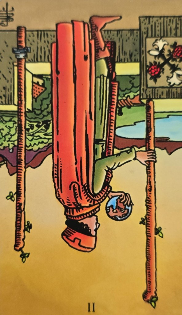 在人際與情感層面,出現損失、不順利、孤立的狀況、不太可靠的夥伴關係與他被驅離原本的地位,並產生受到背叛的心情。這個層面的限制主要都是來自外在的阻礙-那些人不再買他的帳;總而言之,逆位的權杖二,表示這個人對這方面的控制力減弱。
