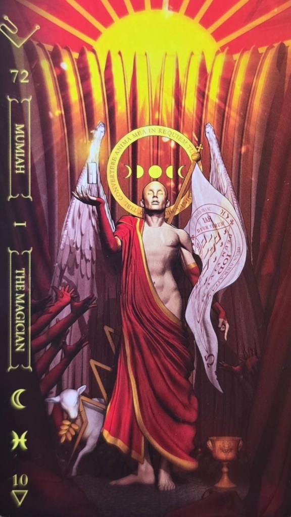 魔術師牌的出現,代表雙 方關係的現況是一個新周期的開始。同時,魔術師牌也代表「被囚禁在某種形式中的力量的死亡」,給帶來的影響是雙方建構良好關係的可能性;由於,這張牌的左右分別是代表「習近平狀況」的戀人牌逆位和「川普狀況」的塔牌(正位)。將這三張牌卡組合起來看,雙方關係的現況,確實的起步了,卻是站在糟糕的起跑點上。