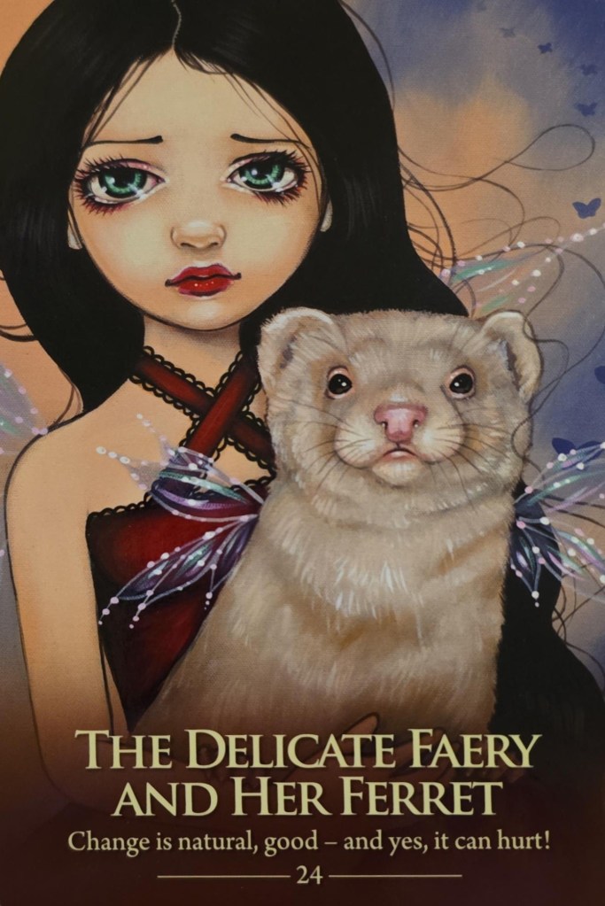 在這個變革的時代,沒有地圖、沒有指南、沒有先前的知識可以輕鬆依靠。當習氏被要求改變自己,要求適應,要求選擇。他覺得自己很脆弱,心裡有恐懼。因為在他生命中的這個週期與另一個週期之間的過渡並非是輕鬆、流暢、流暢和平穩的,而是粗暴、嚴酷、殘酷和痛苦的。但是,就像這個纖細的仙女她身邊有她的雪貂一般,習氏不需要獨自面對這些時刻,他的夥伴將利用他的爪子、他的危險感和他狡猾的聰明來幫助習氏克服恐懼,取得成就!然而,重點還是在習氏能否把注意力從他害怕的事情轉移到他想成為的事情上,面對那些讓他不必要地恐懼的事情。