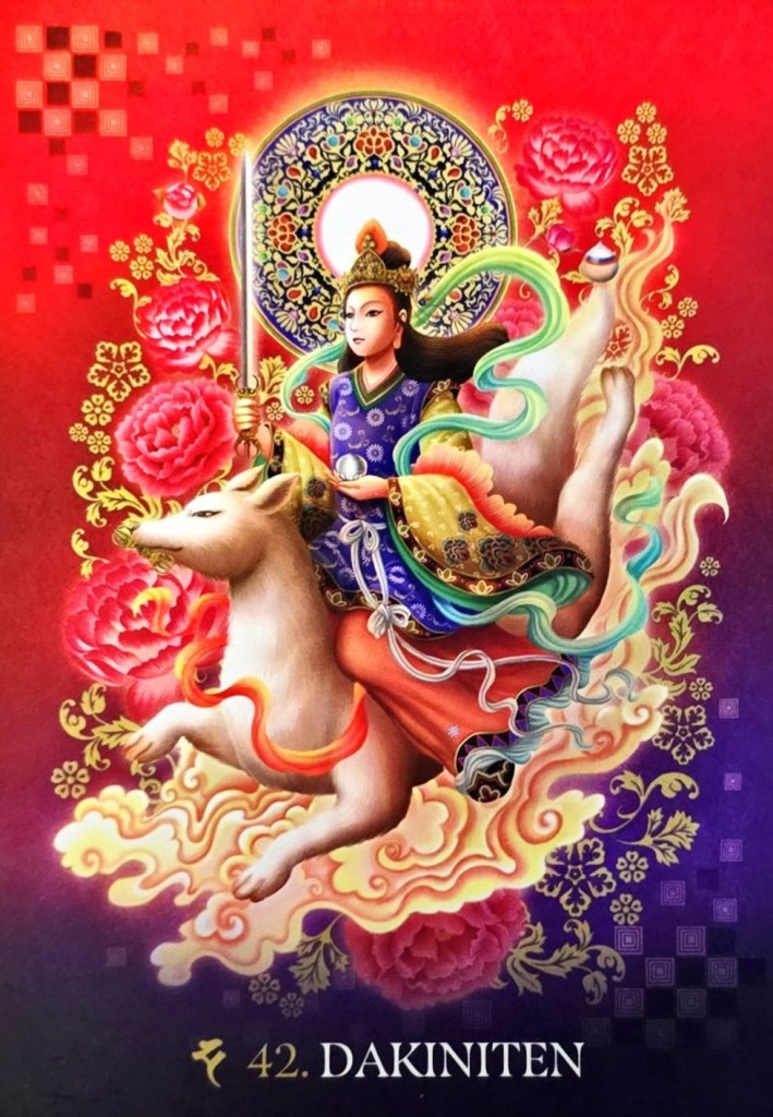 | 所謂的「荼枳尼天」,就是稻荷神,是願望的實現者。荼枳尼天描述的是如果願望足夠強烈,它會被聽到並賜予。 它提示【女性天皇】,別忘了堅韌。 無論結果如何,重要的是要製定計劃並付諸行動。請記住,失敗與成功同等重要。因為,正是通過經歷失敗並利用失敗來改進,才能創造出經過磨練和完善的事物。 |