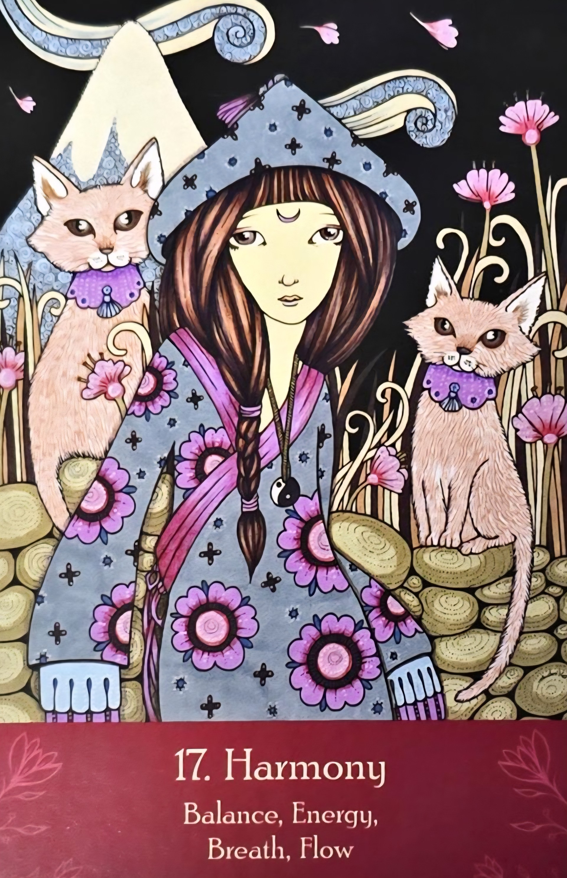 這張牌卡給出的建議是,創造平衡與流暢,以增強生活中的能量流動。比如修習冥想和太極,恢復陰陽的平衡;或是任何能感受到完美平衡與宇宙和諧律動的方法。